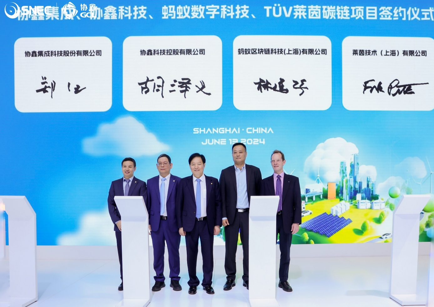 6月13日,第十七屆(2024)國際太陽能光伏與智慧能源(上海)展覽會開幕首日,協(xié)鑫集團(tuán)旗下協(xié)鑫集成(002506.SZ)、協(xié)鑫科技(03800.HK)聯(lián)袂螞蟻數(shù)字科技、德國萊茵TüV推動協(xié)鑫碳鏈項(xiàng)目升級版全面落地,以此打造協(xié)鑫碳鏈2.