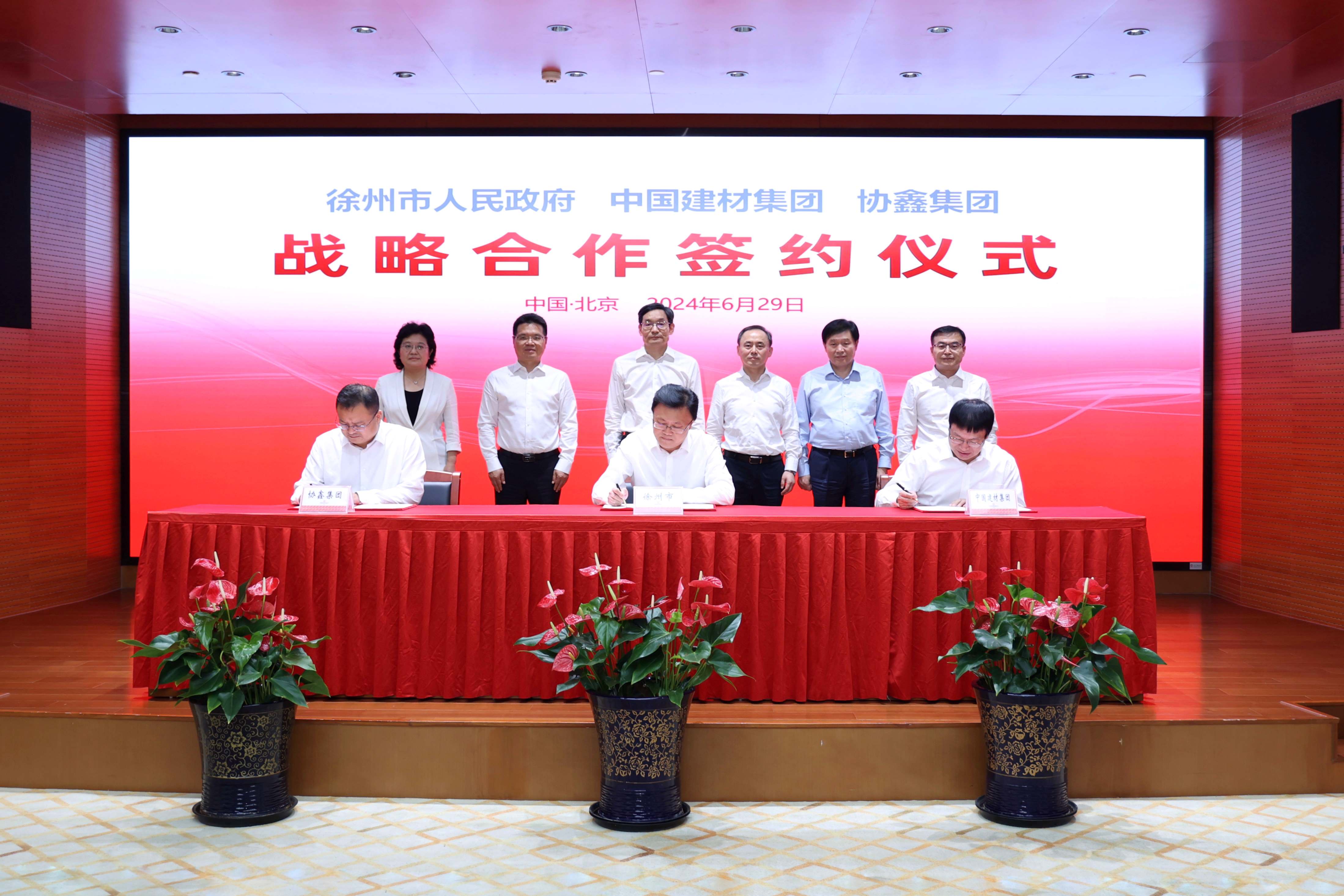 6月29日,江蘇省徐州市政府與中國建材集團(tuán)、協(xié)鑫集團(tuán)在京舉行戰(zhàn)略合作簽約儀式,中國建材集團(tuán)黨委書記、董事長周育先,徐州市委書記宋樂偉,市委副書記、市長王劍鋒,協(xié)鑫集團(tuán)董事長朱共山等領(lǐng)導(dǎo)出席并見證簽約。 根據(jù)協(xié)議,徐州市和中國建材集